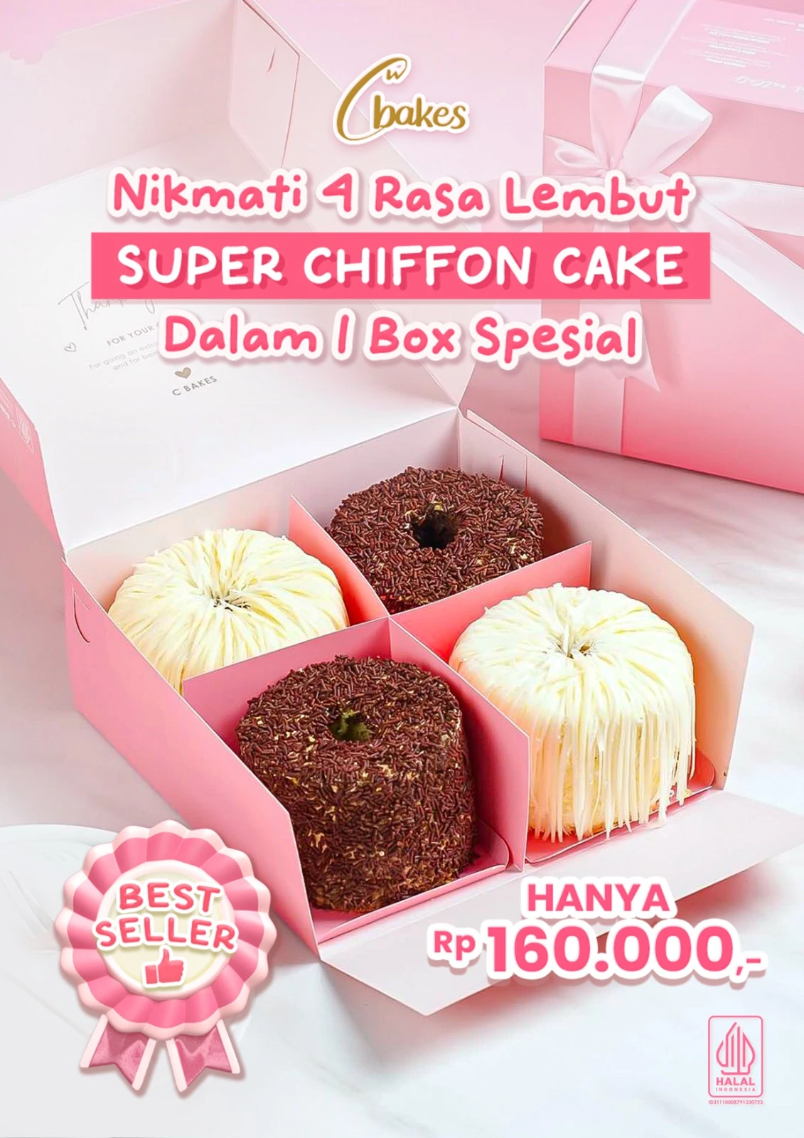 Chiffon lembut! Gaada yang fail semu cakenyaa, mulai dr croissant , chiffon, porsinya generous! Cocok bgt buat cafe hopping, aplg bisa buat ksh gift ke org juga krn super cantik ❤